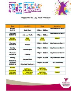 Llay programme April to July 2019